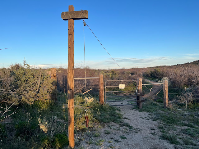 I am still thinking about this "interaction". Did someone really say that or did I imagine it or what? All I know is I was hungry and needed calories - I had been daydreaming of eating my macaroni salad. I decided to ride down a bit on the jeep road before eating even though I really wanted to rest my back against the AZT gate but as mentioned I wasn't staying there due to the mystery voice.